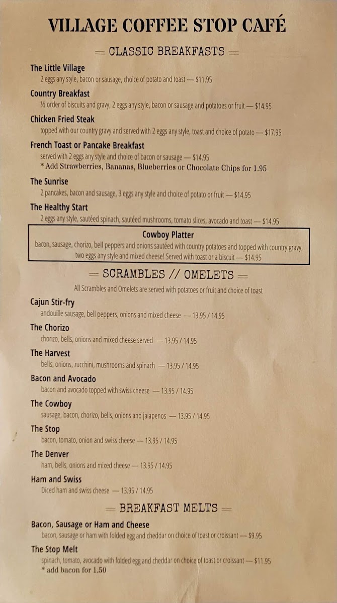 The Village Coffee Stop & Catering Menu